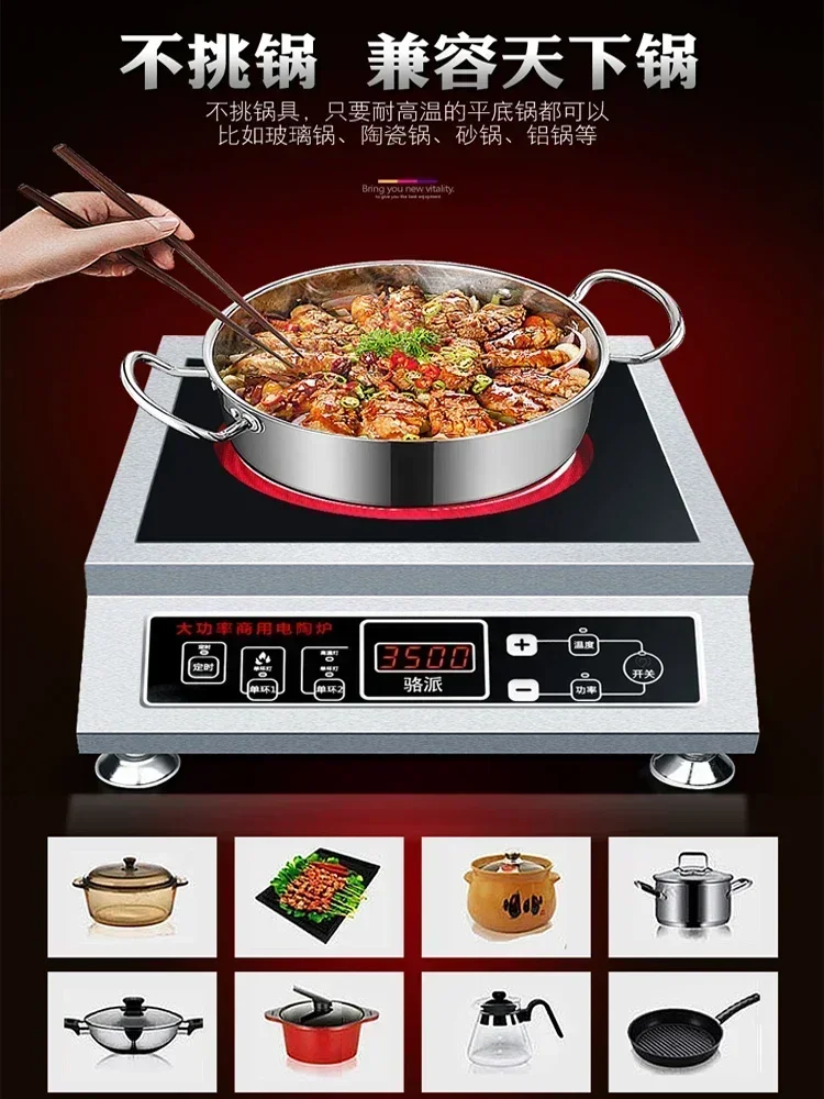 Nouveau poêle électrique en céramique domestique/commercial, haute puissance 3500 W, soupe 4000 W - table, avec fonctions d'onde lumineuse et d'induction.