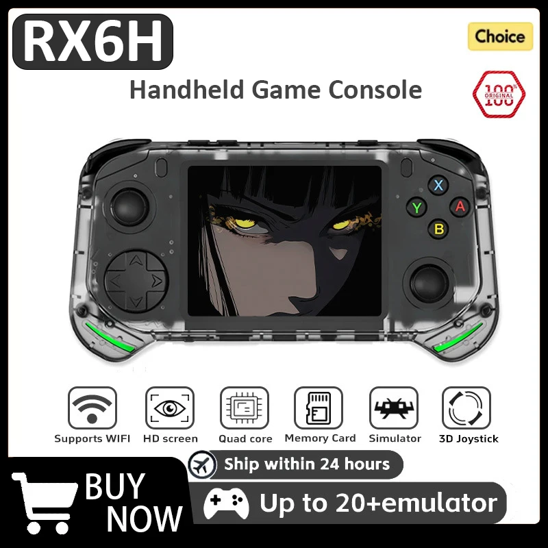 Console de jeu vidéo Portable rétro RX6H, système Linux Open Source, écran IPS 3.5 pouces 640×480, 64 go/128 go, lecteur de poche Portable