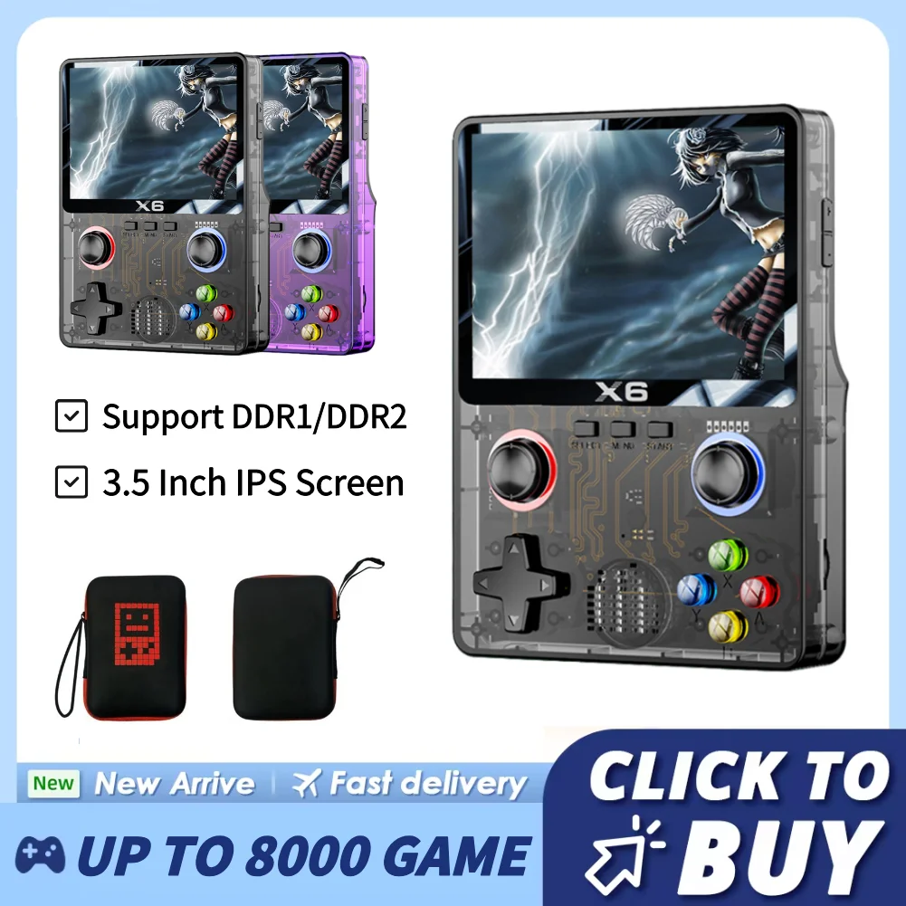 Console de jeu vidéo portable X6, 2000mAh, écran IPS 3.5 « , lecteur vidéo classique, 8000 jeux, 11 émulateurs intégrés pour adultes et enfants