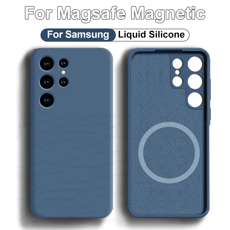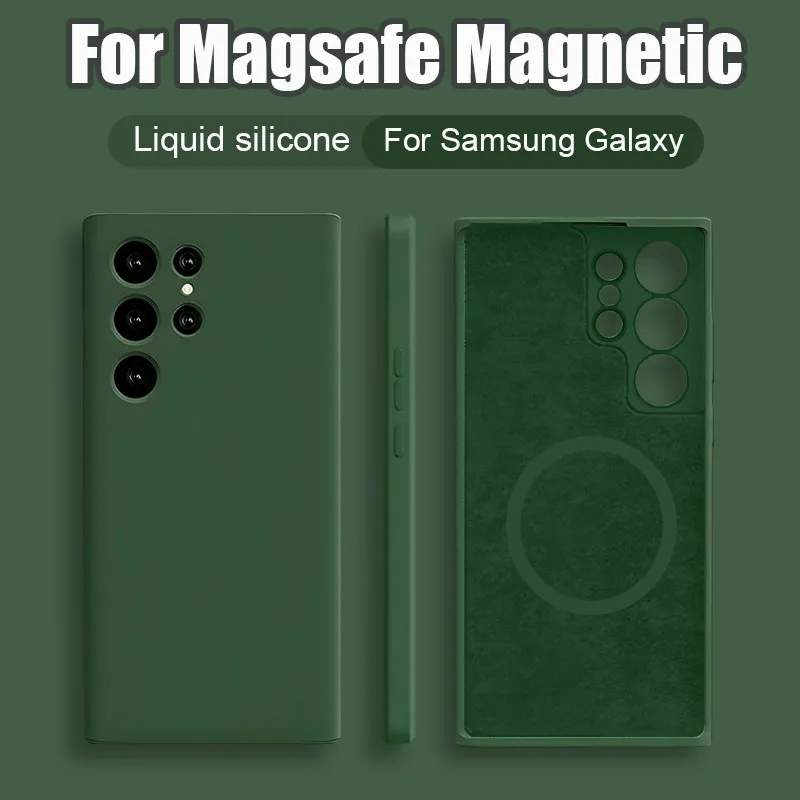Coque magnétique en silicone liquide For Magsafe pour For Samsung Galaxy, charge sans fil, coque arrière souple antichoc, Samsung Galaxy S23, S22, S21, S24 Ultra Fe