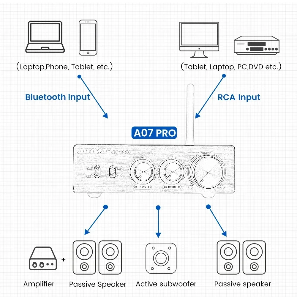1.Il dispose de deux entrées et une entrée AUX est pratique pour relier l’entrée de signal analogique filaire traditionnelle ; Il existe également une entrée sans fil Bluetooth, qui peut être facilement liée aux téléphones mobiles, ordinateurs et autres appareils Bluetooth.Il n’est pas lié par des fils et peut facilement profiter de la musique
