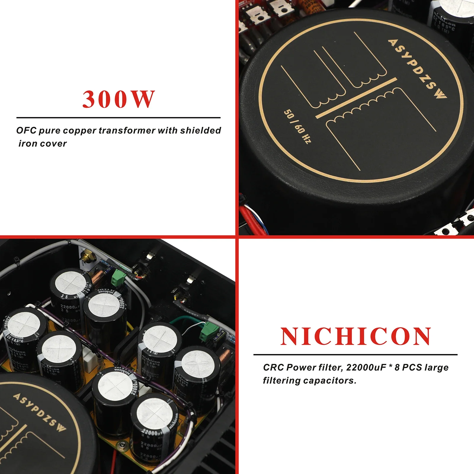 ◆ La partie alimentation adopte un circuit CRC, un grand condensateur de filtre 22 000 uF * 8 PCS.