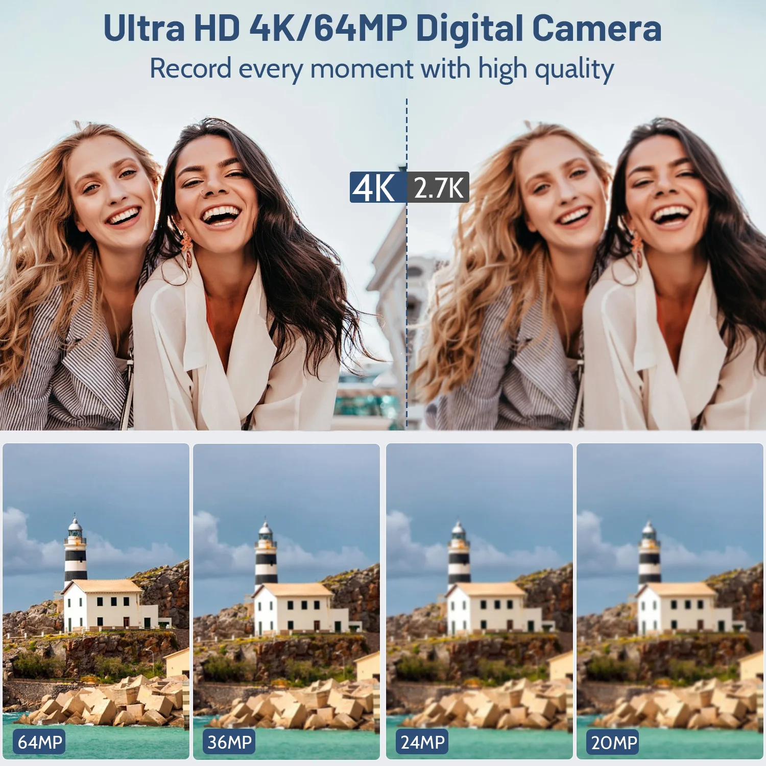 【Caméra numérique 64MP et UHD 4K】Avec son capteur haute résolution de 64 mégapixels, cet appareil photo peut capturer des images détaillées avec des couleurs riches et un contraste.Avec son écran IPS rabattable de 3 pouces et sa résolution vidéo 4K, cette caméra vidéo produit en douceur une vidéo HD stabilisée.