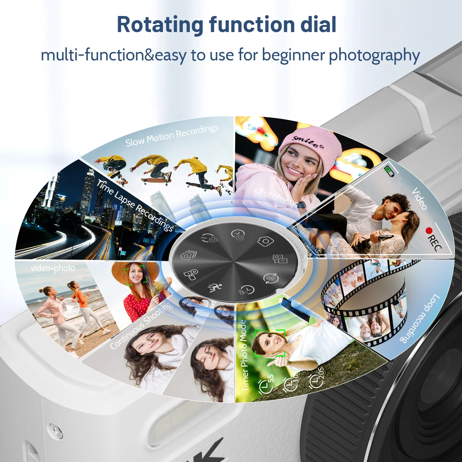 【Caméra multifonctionnelle 4K Point et Shoot】Les appareils photo numériques 4K pour la photographie sont multifonctions, telles que le panneau de bricolage, les deux appareils photo, la prise de vue continue, l’anti-secousse, la capture de visage et la fonction de pause vidéo permettent d’économiser du temps et de la mémoire de montage, et les fonctionnalités de révolution du temps et du ralenti créent le créativité que vous voulez!