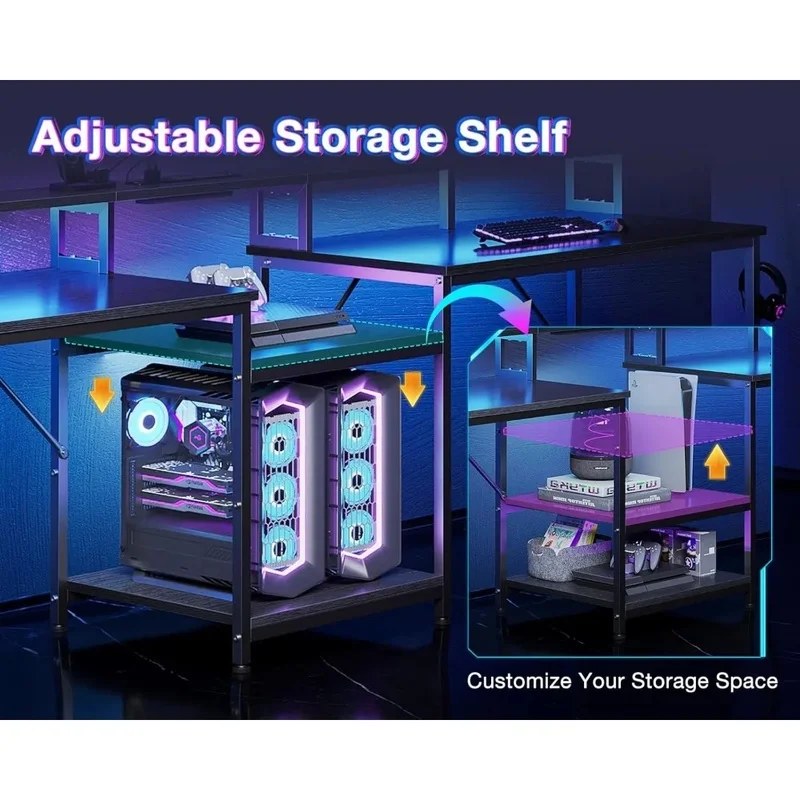 Be the first to review “Bureau de jeu double de 98 pouces pour 2, bureau d’ordinateur de bureau à domicile avec étagères de rangement, port de chargement USB et éclairage LED”