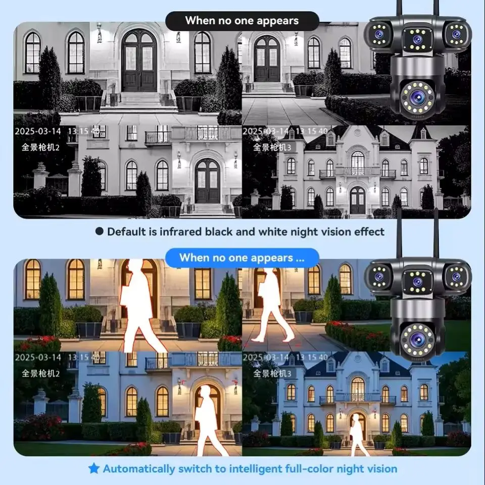 10K 20MP Home Security Outdoor WiFi Camera 4 Lens 4 Screen 360° 16X Zoom CCTV Wireless Surveillance PTZ Cam Security Protection HiEasy APP