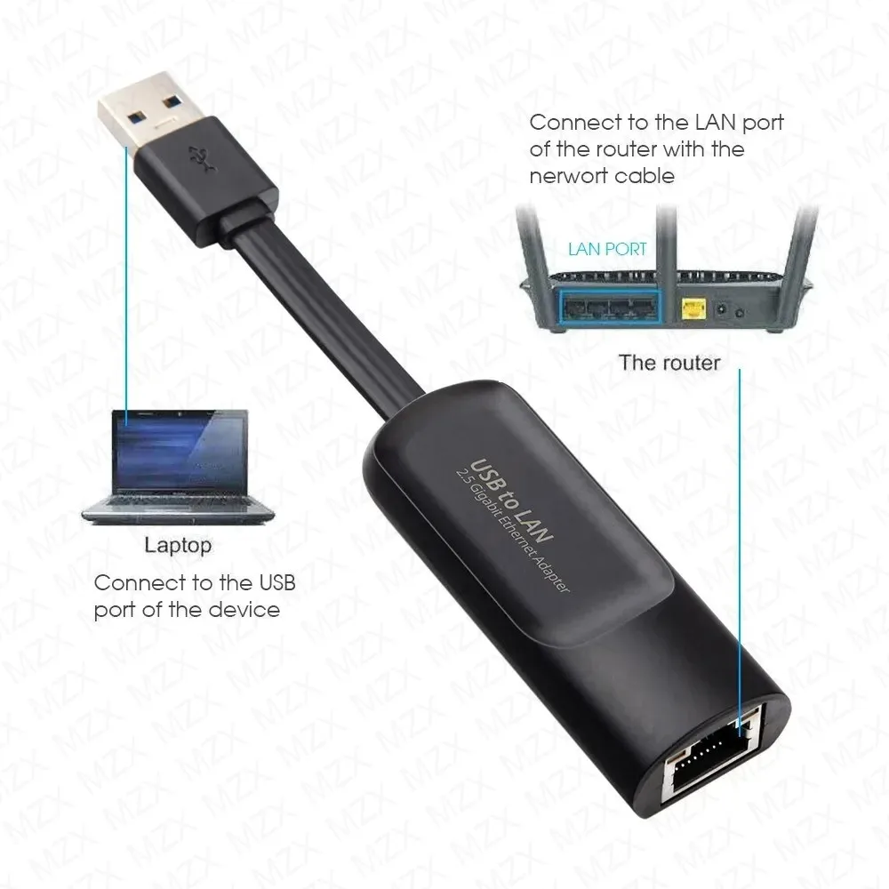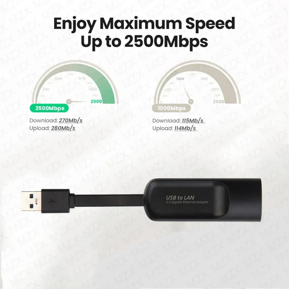 1. L’adaptateur USB vers Gigabit Ethernet prend en charge le haut débit jusqu’à 2,5 Gbit/s (2 500 Mbps), 2,5 fois plus rapide que 1 Gbit/s Gigabit Ethernet et rétrocompatible avec 10/100/1000 Mbps.