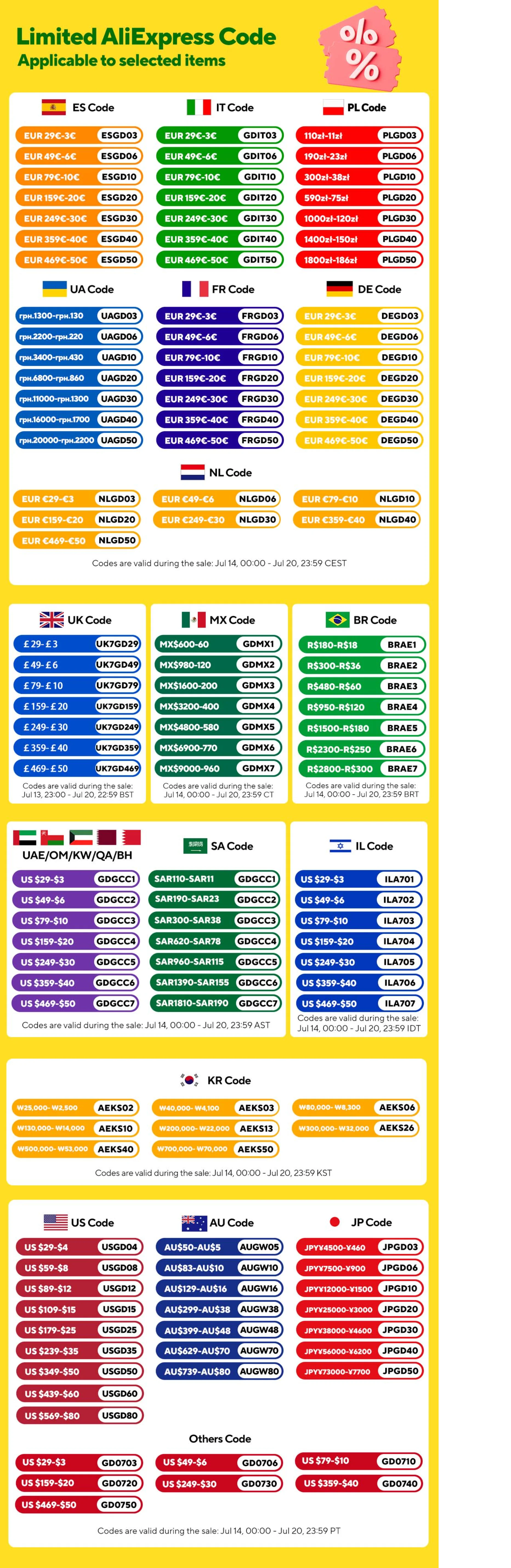 Pays inclus :