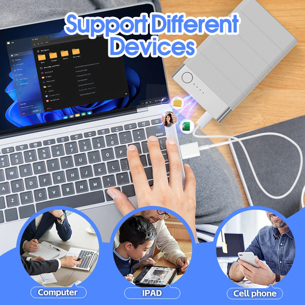 1. Facile à utiliser:Le bâton photo du disque dur externe est livré avec une batterie intégrée de 5000mAh, ce qui le rend pratique et simple à utiliser. Il peut également charger votre téléphone, offrant des fonctionnalités supplémentaires en déplacement.