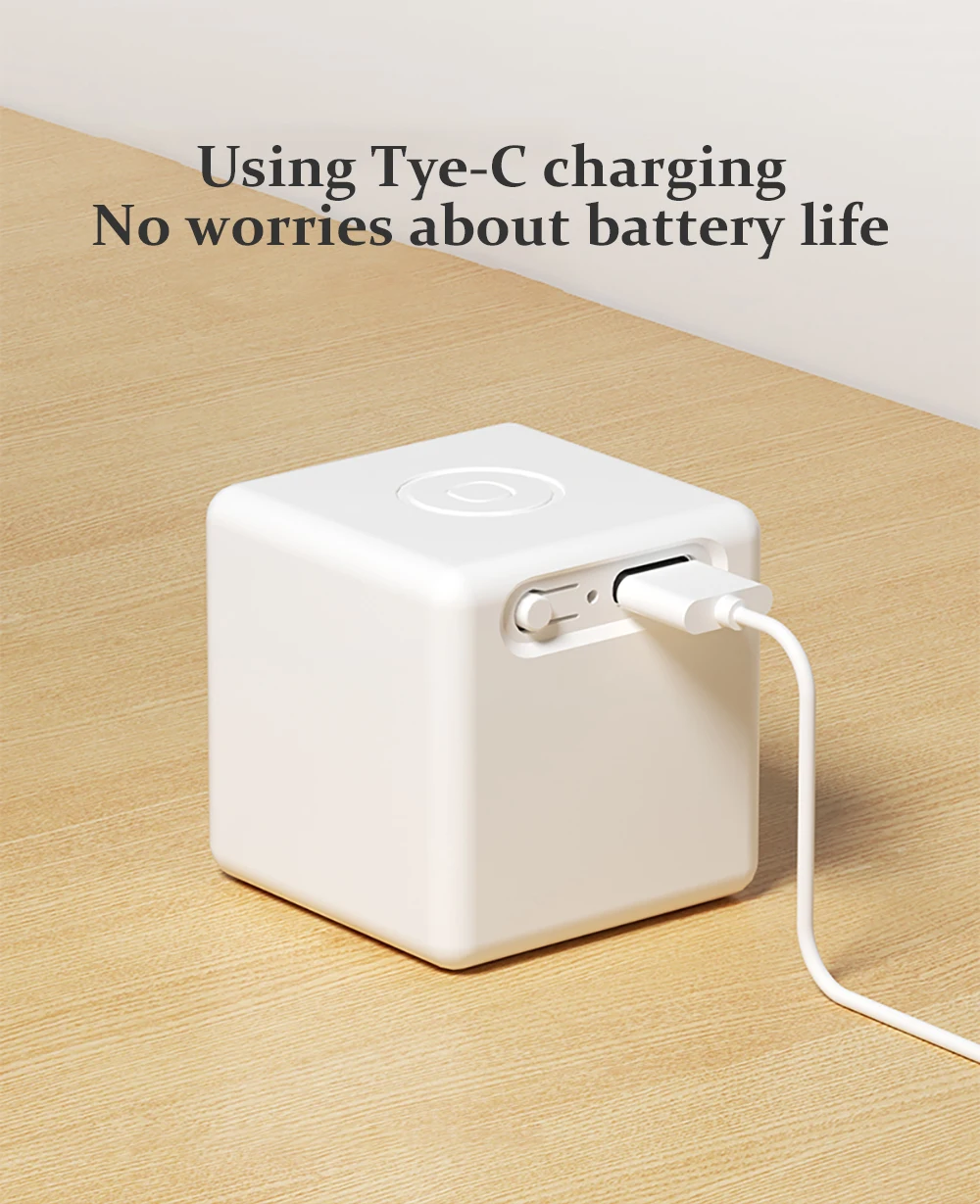 Pas de soucis pour la vie de la batterie. Adieu au problème du remplacement fréquent de la batterie, nous adoptons la technologie de charge Tpye-C pour rendre la charge plus pratique et efficace. Avec une simple connexion, votre robot doigt sera immédiatement plein d’énergie, vous offrant une expérience utilisateur durable. Que ce soit pour le travail ou le divertissement, les robots vous accompagneront plus loin! Entièrement chargé, veille pendant environ 200 jours avec 5 clics par jour, faible consommation d’énergie et longue durée de veille.