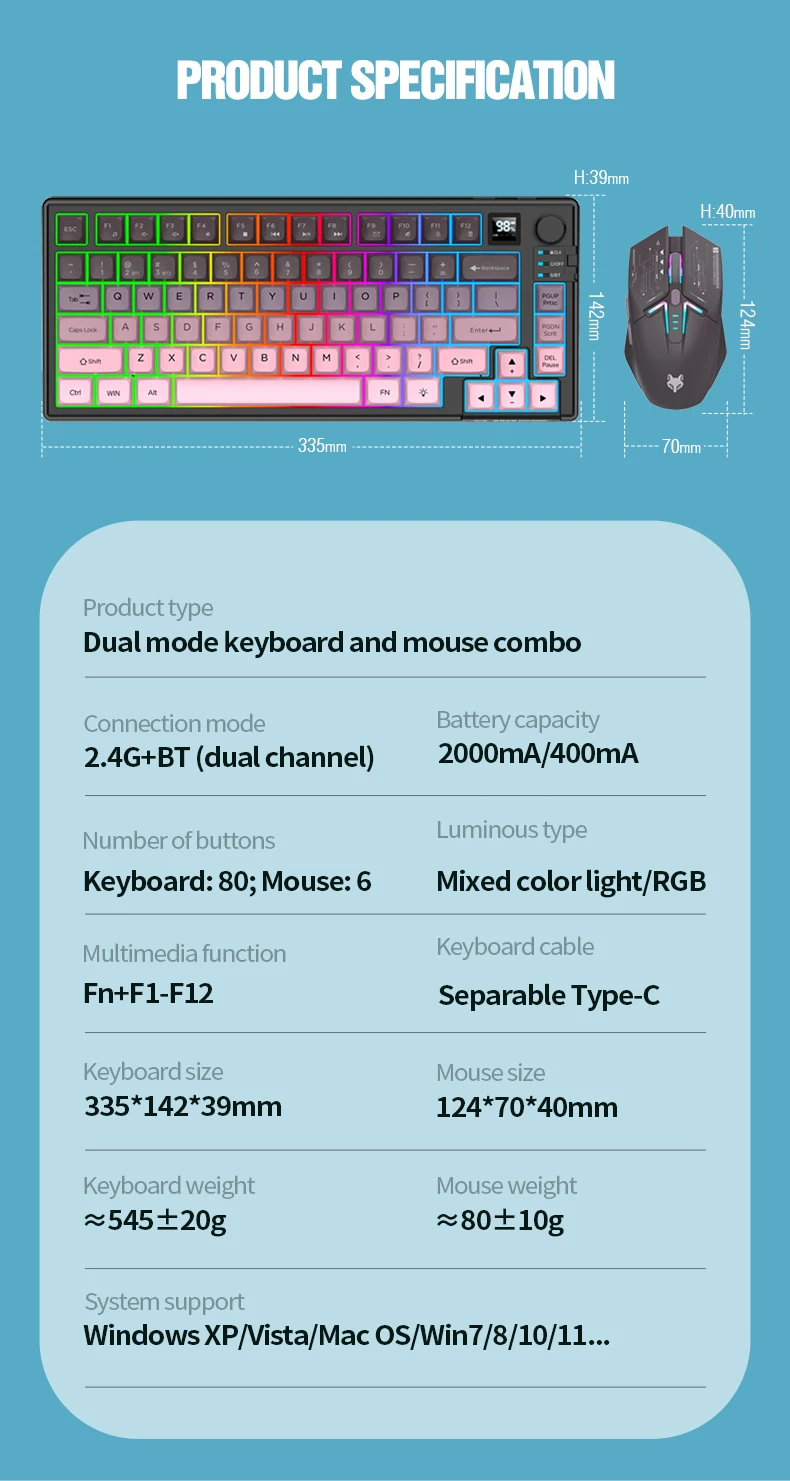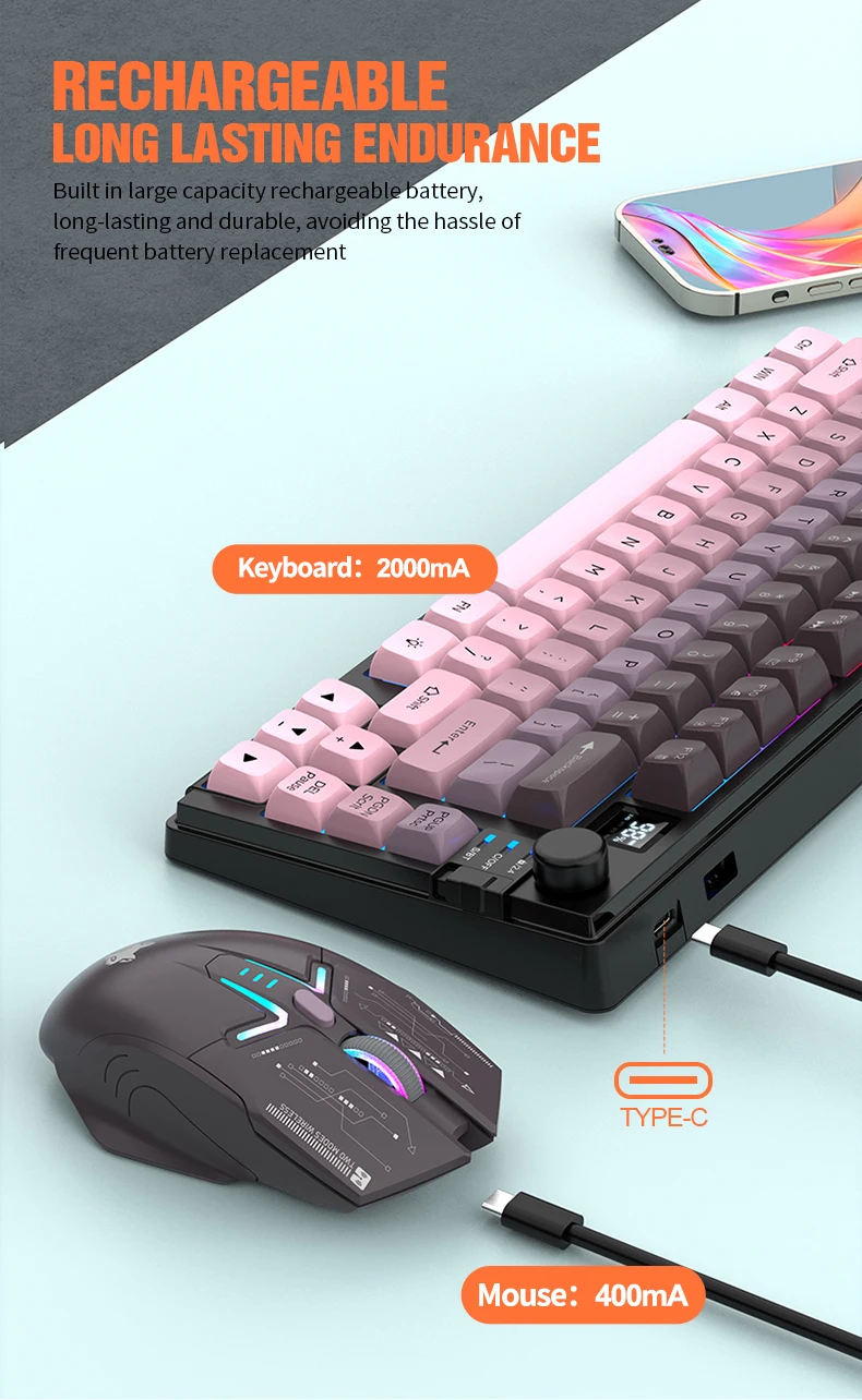 ▸ Batterie de plus de 10 heures (Clavier : chargement de type C/souris : rechargeable)