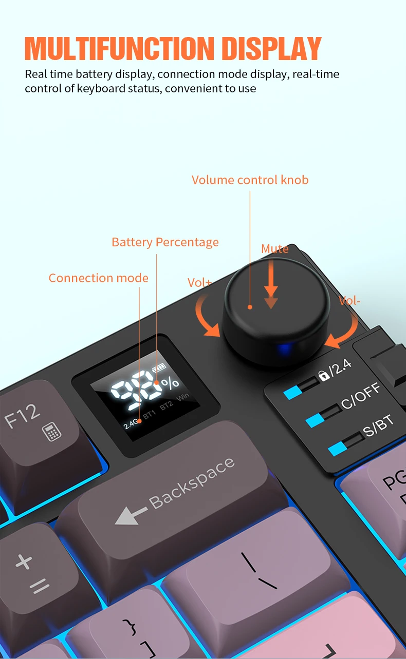 AFFICHAGE INTELLIGENT : État de la batterie en temps réel, mode de connexion et indicateurs de verrouillage des capuchons/nombres – ne devinez plus!