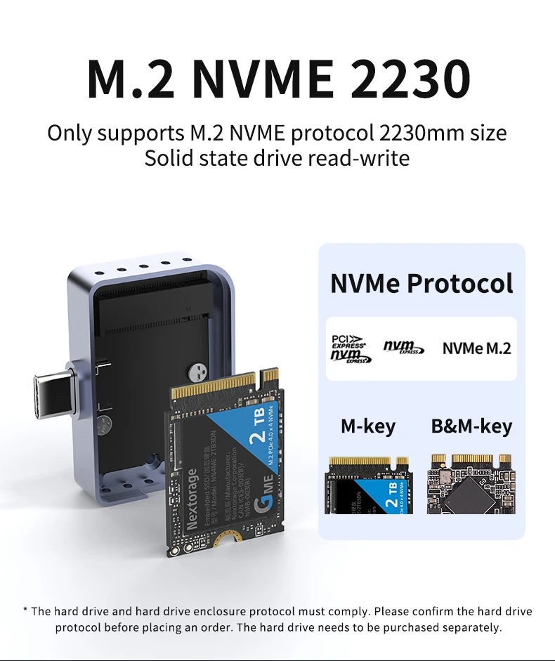 GODO 2230 type-c USB M.2 NVMe SSD boîtier conception de prise directe boîtier externe Portable pour téléphone/PC/Mac