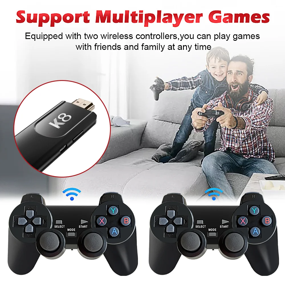 K8 Console de jeu vidéo intégré plus de 40000 jeux rétro lecteur de jeu portable 64G 4K TV Game Stick 2.4G contrôleur sans fil manette de jeu