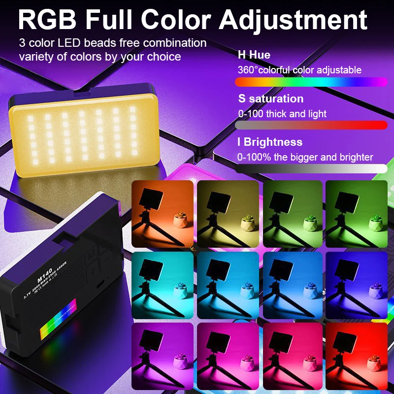 Lampe vidéo LED RVB pour caméra Lumière d’appoint Lanternes portables rechargeables 2000MAh Ajustées 3 modes 2700-6500K Éclairage selfie portable