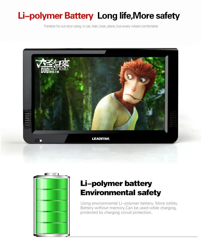 LEADSTAR D10 10 inch HD Portable Mini TV Built in ISDB-T Digital Tuner ,supports full segment,it built in battery,It applies to family, car, outdoor, yacht, RV, etc.