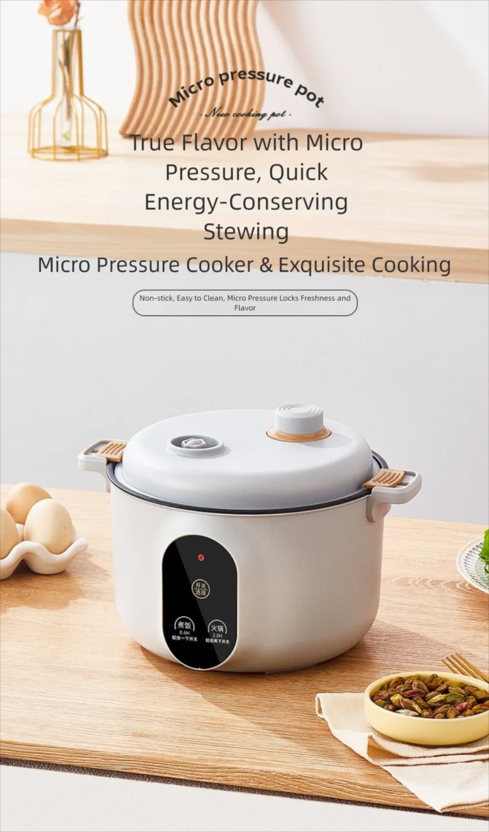Micro autocuiseur facile 20cm, cuiseur à riz antiadhésif à chauffage rapide, 2 L, Anti-débordement, marmite de cuisson domestique