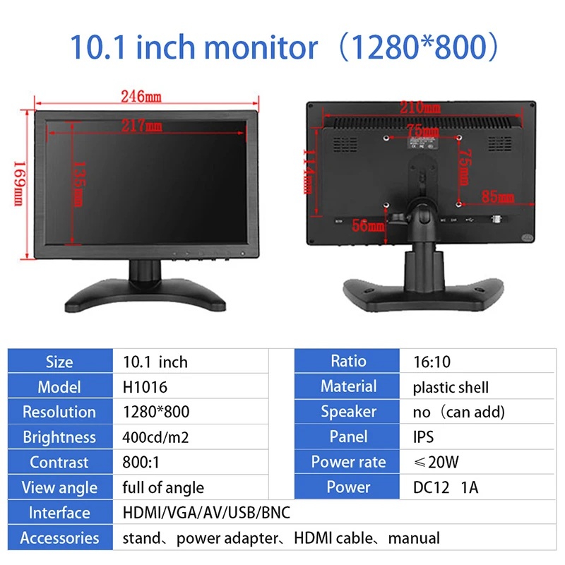 Moniteur de bureau industriel avec entrée HDMI VGA pour la sécurité de la caméra CCTV, écran LCD TFT, annulation d’écran, offre spéciale, 10.1 pouces, 16:10