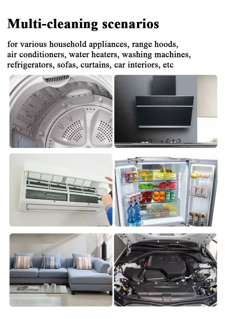 5,multi brushes , to meet the needs of various household appliances, a variety of cleaning functions, various household appliances, range hoods, air conditioners, water heaters, washing machines, refrigerators, etc.