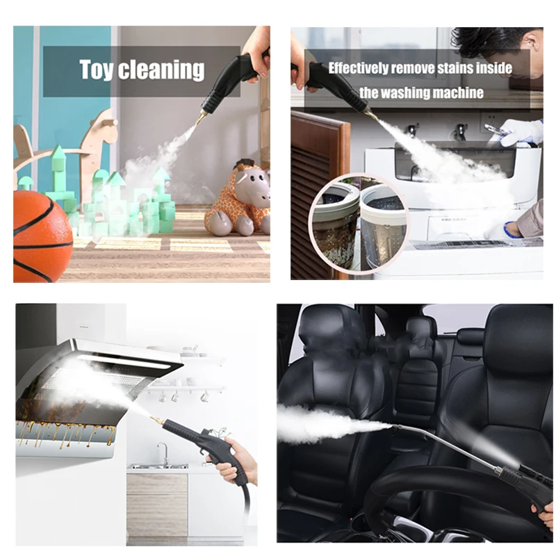 1.,dry and wet adjustment; adjust the water output, Steam is drier, can clean sofas,curtain, tables,cars, air conditioners, range hoods, washing machines,  etc.