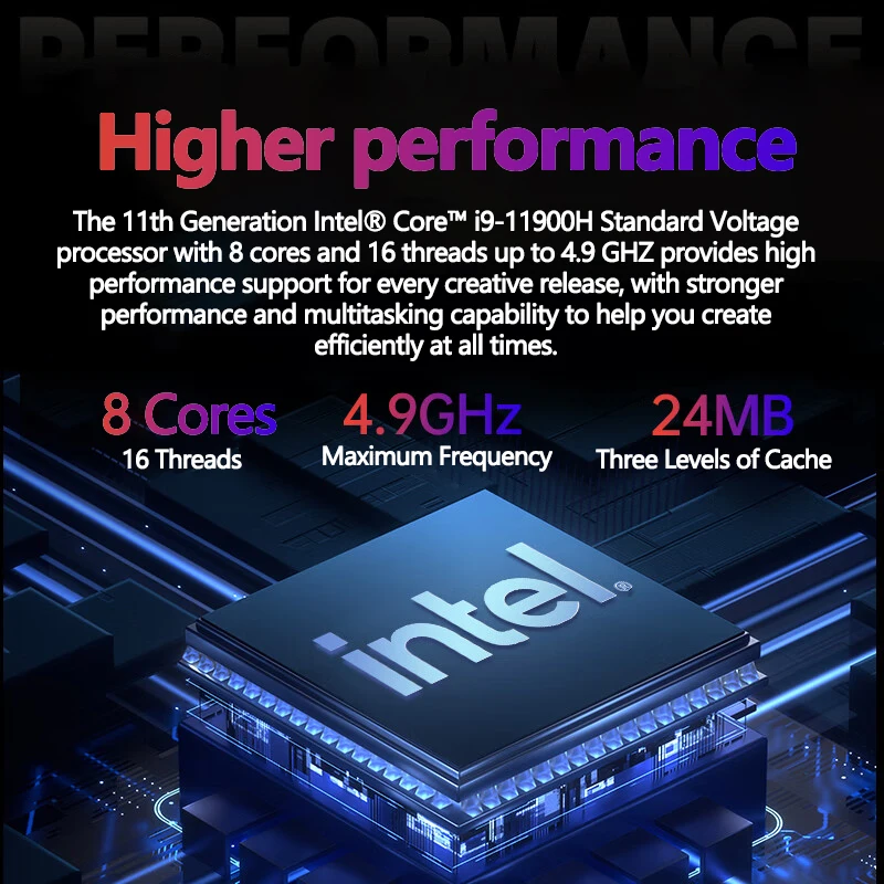 Le processeur de tension avec 8 cœurs et 16 filetages jusqu’à 4,9 GHz offre un support haute performance pour chaque version créative, avec des performances plus fortes et une capacité multitâche pour vous aider à créer efficacement à tout moment.