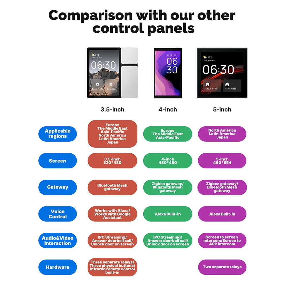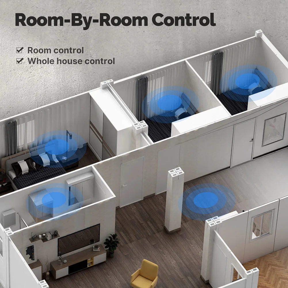 5. conception asymétrique de bouton:Le panneau de commande multifonctionnel d’écran tactile comporte un design asymétrique de bouton de trois-zone et de deux-segment avec trois LED à télécommande infrarouges enfoncées, maximisant l’angle de contrôle infrarouge pour la gestion augmentée de dispositif. Il prend en charge plus de 110 catégories d’appareils, un nombre illimité d’appareils et de scènes, et prend en charge 12 catégories de contrôle d’appareils infrarouges.