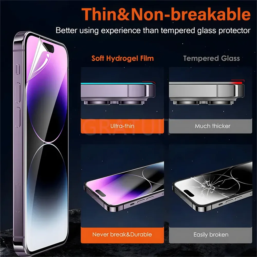 Protecteur d’écran pour iPhone 16 15 14 Pro Max Plus, 3 pièces, Film Hydrogel à couverture complète pour 13 12 Mini 11 Pro, Film arrière de téléphone, pas du verre