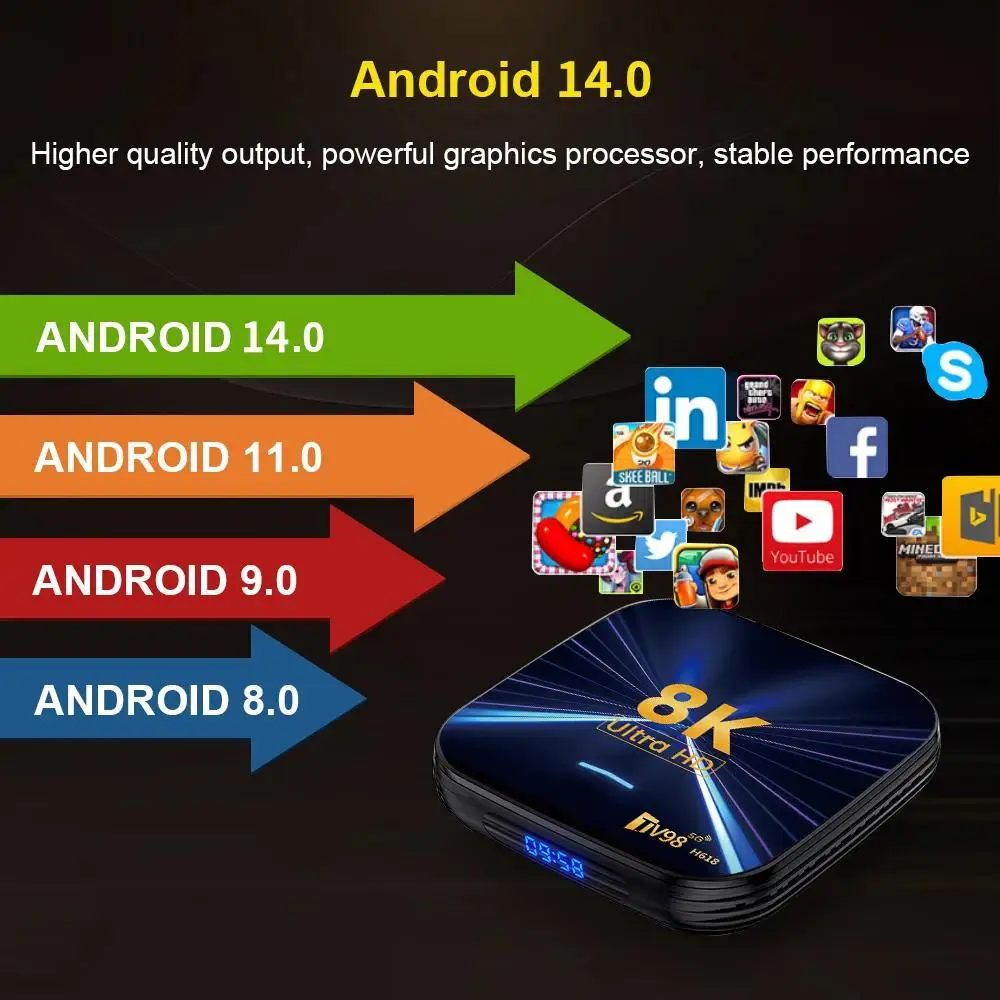Alimenté par la puce Allwinner H618, Quad Core Cortes-A53 et GPU G31 multicœur.Plusieurs options de mémoire garantissent un fonctionnement fluide des applications et des vidéos HD, des jeux et un visionnage dramatique sans décalage.