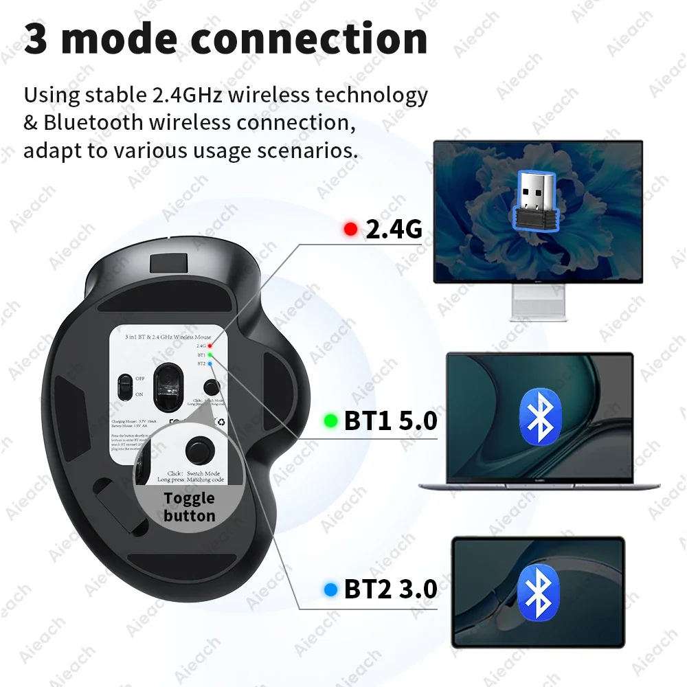 SMVP souris ergonomique sans fil Bluetooth double Mode 3 appareils 2.4G + BT pour Windows Mac iOS Android Rechargeable 400mAh
