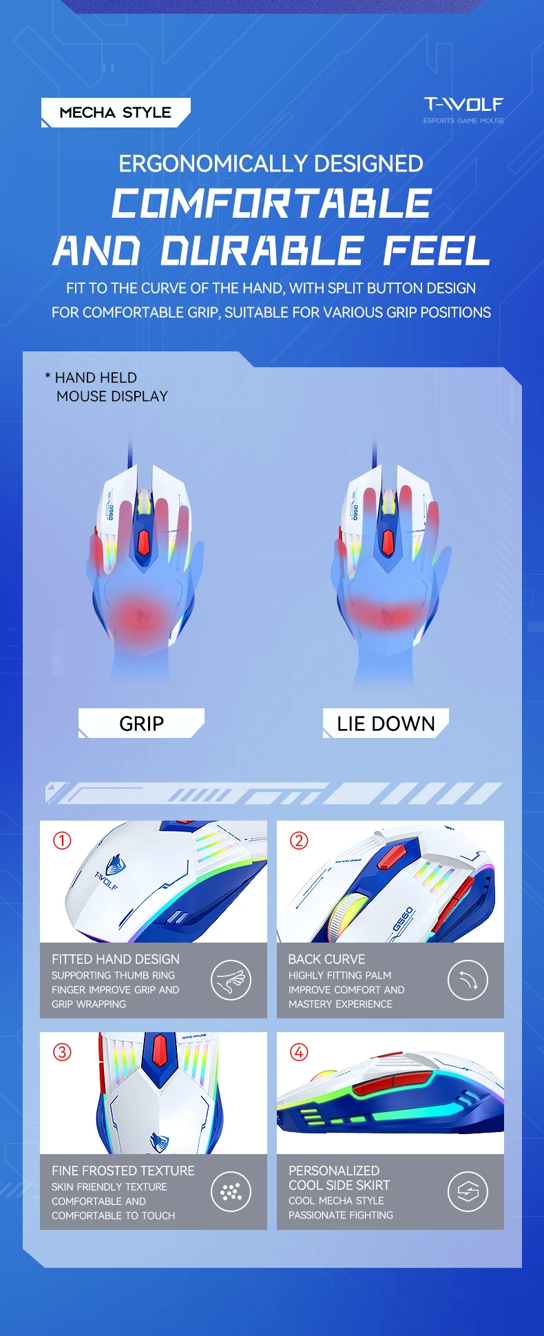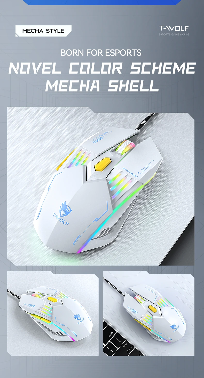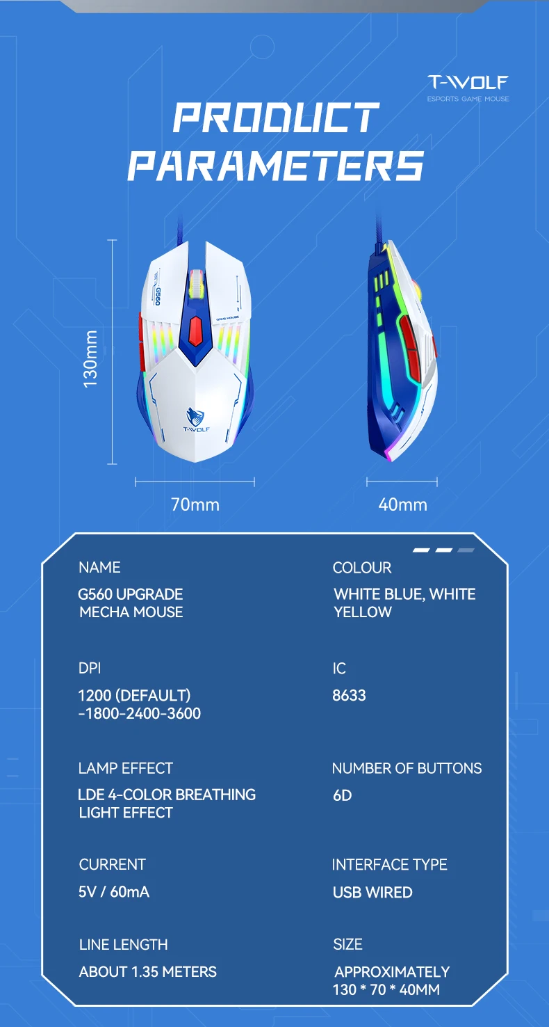 Souris de jeu USB filaire 6D touches 4 couleurs rétro-éclairage 3200DPI conception ergonomique pour ordinateur de bureau ordinateur portable souris de bureau G560
