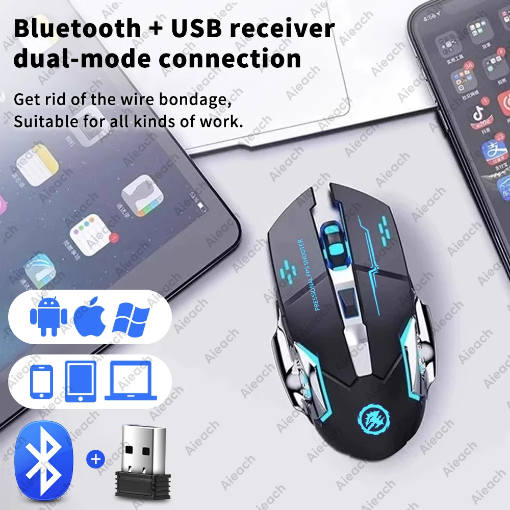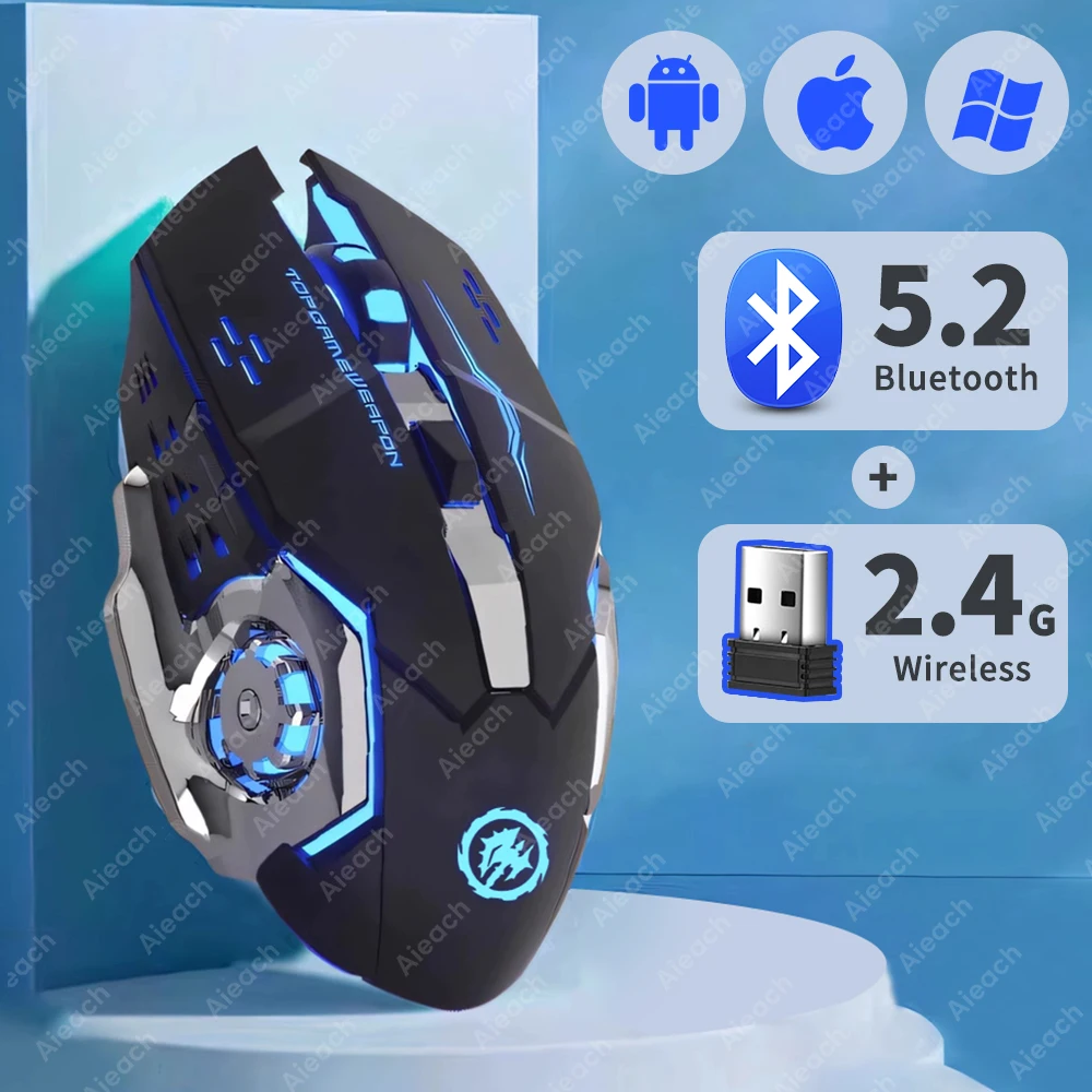 Souris sans fil double Mode, mécanique par galvanoplastie 2.4G/Bluetooth pour MacBook Pro/Surface Pro, rétroéclairage 2000DPI Rechargeable