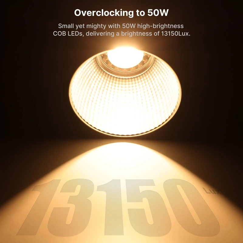 Sortie lumineuse (avec réflecteur) : 13150 lux (à 6 500 K, 0,5 mètre)