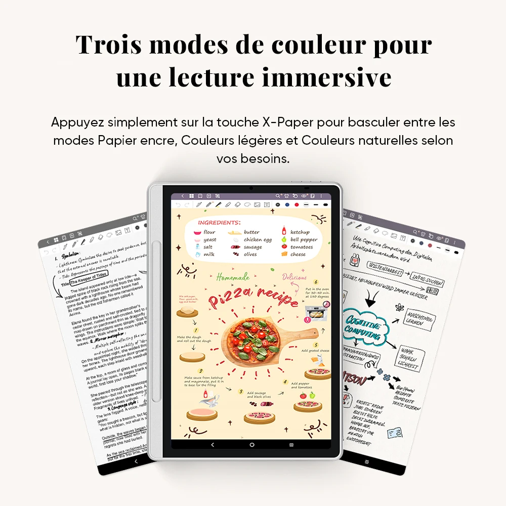 Appuyez simplement sur la touche X-Paper pour basculer entre les modes Papier encre, Couleurs légères et Couleurs naturelles selon vos besoins.