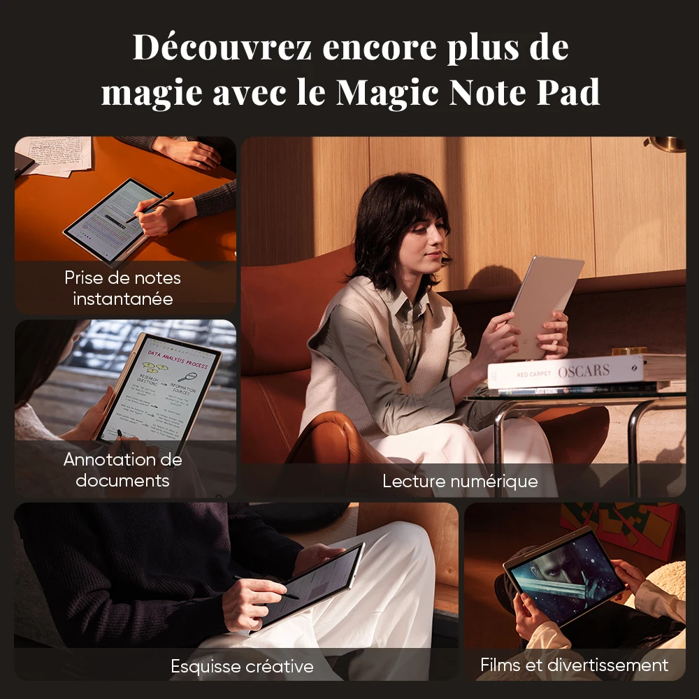 L'écran X-Paper avec nano-gravure AG réduit les reflets et l'éblouissement. La lecture et l'écriture donnent l'impression d'être sur du papier.