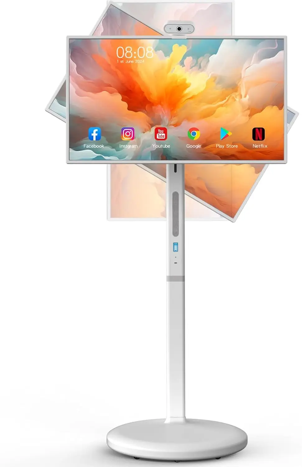 Écran Tactile Portable de 32 Pouces 1080P, Moniteur sur Roues, Android OS 13, Batterie spatirée, Poignées Amovibles, Caméra, HDMI